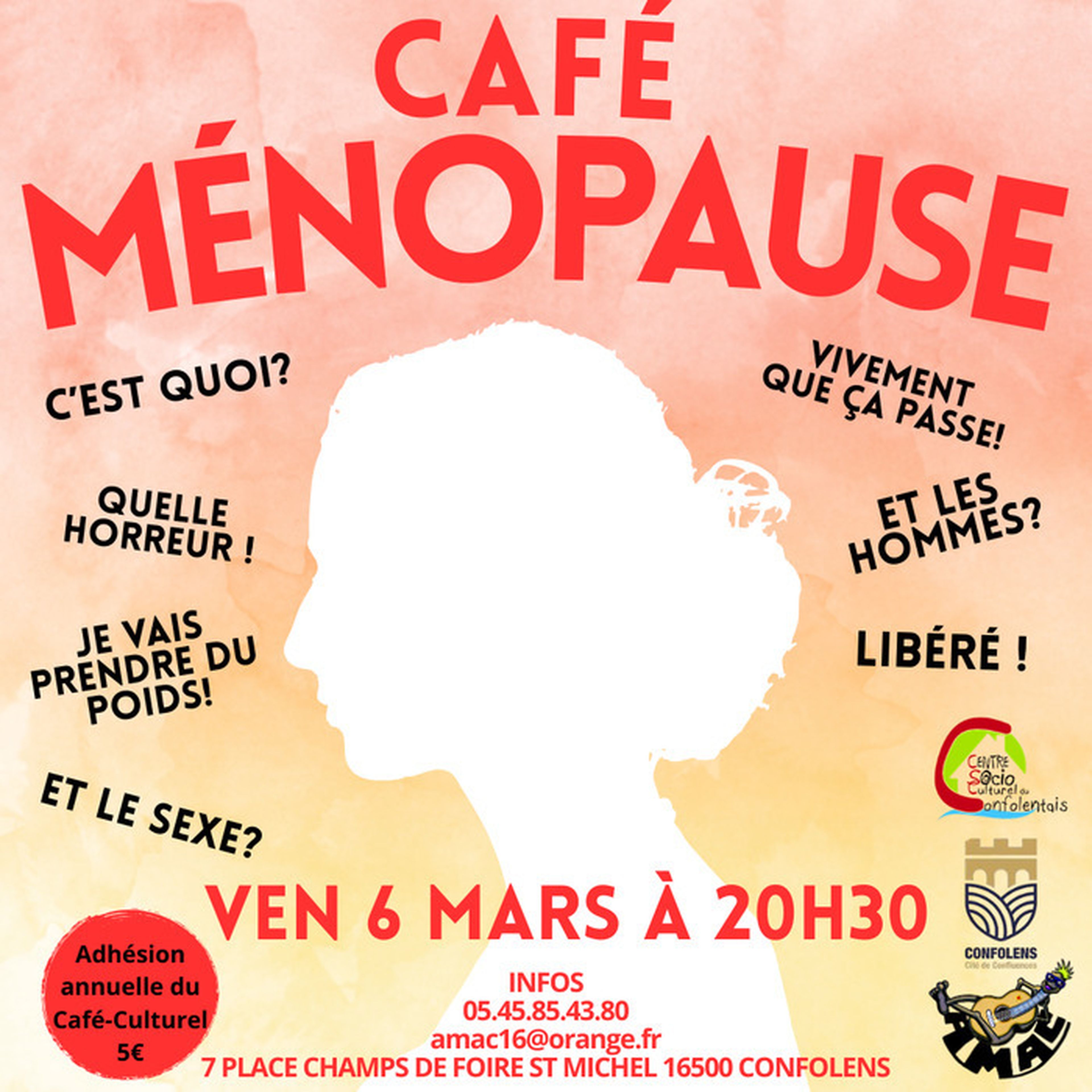 Animé par Pascale SIMON — ancienne gynécologue à l’hôpital de Confolens et fondatrice de l’association Colimaçon — cette rdv permettra d’aborder, en toute simplicité et avec bienveillance, la ménopause : ses réalités, les idées reçues, les tabous, vos questions, vos craintes… mais aussi les espoirs, les transformations et l’expérience vécue. Nous parlerons des mythes et de tout ce qu’un bon café et une discussion sincère peuvent aider à déconstruire.