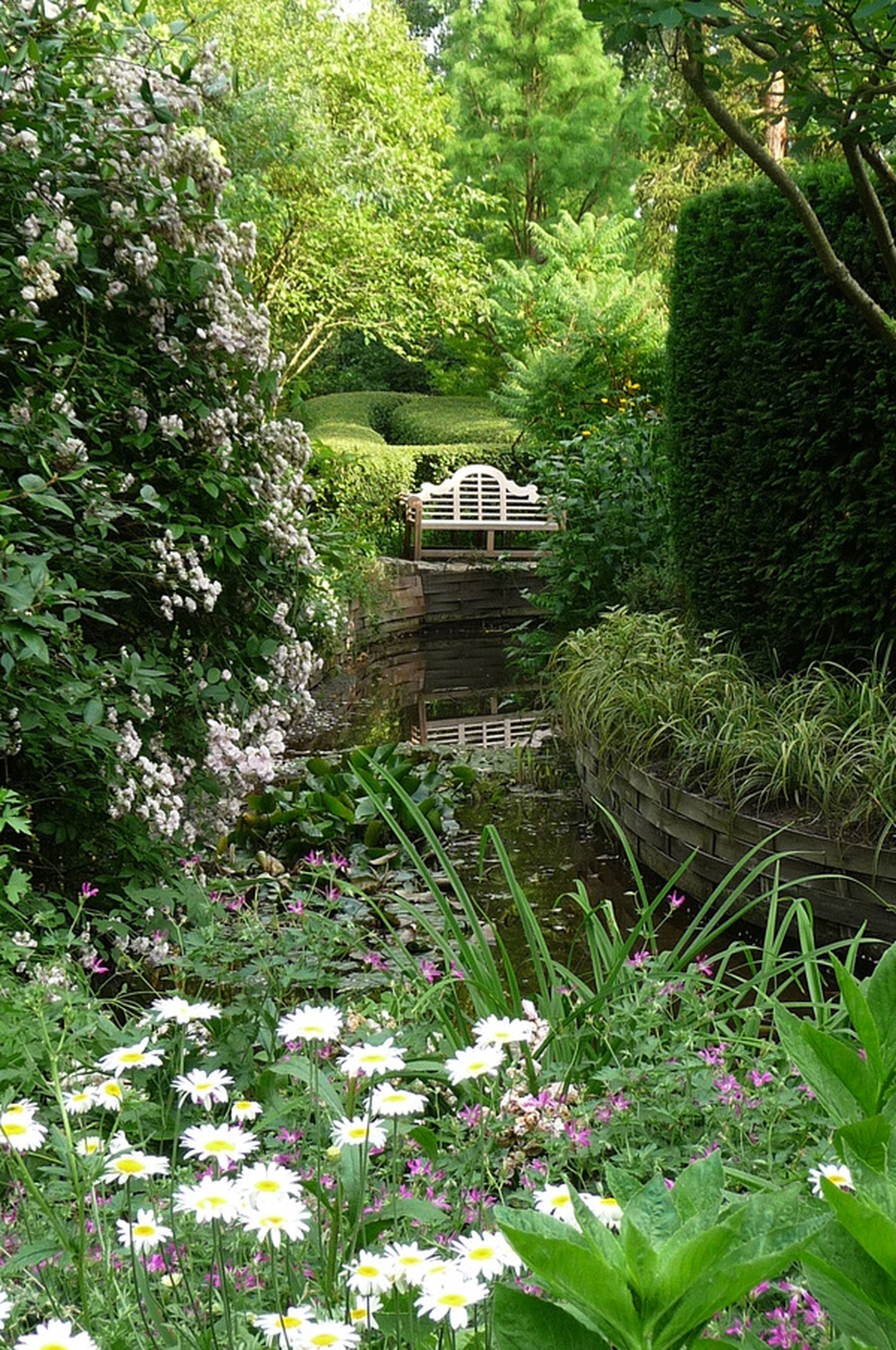 Se ha realizado aquí un jardín paseo, un jardín perspectiva con óptimo uso del espacio permitiendo así apreciar mejor las composiciones del paisaje para que el ojo y la mente sean en todo momento solicitados.