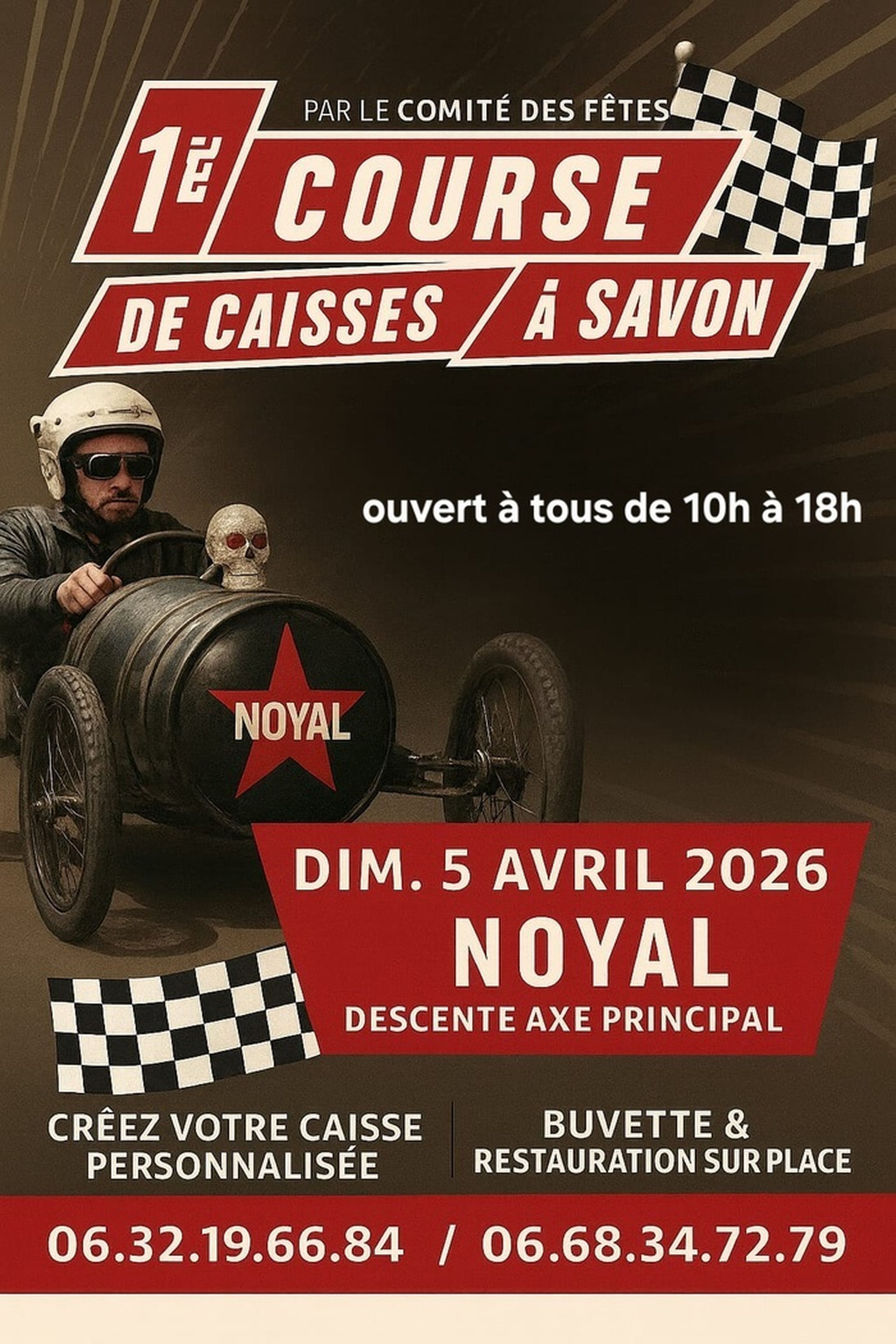 1ere course de caisse a savon organisée par le comitédes fêtesde Noyal ( 22400 ) le dimanche 5 avril 2026 de 10h à 18h.