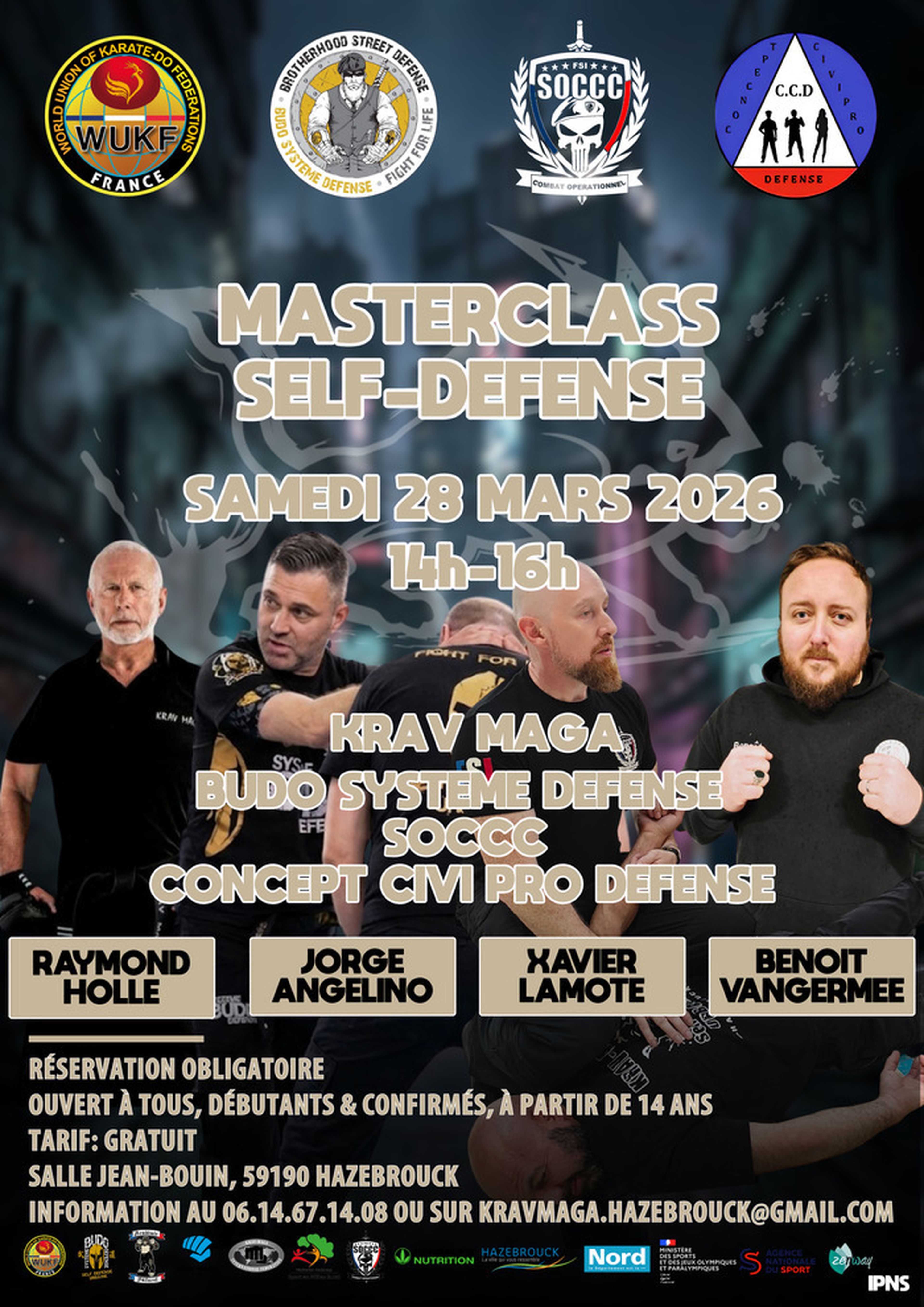 Le samedi 28 mars 2026, Hazebrouck accueille un événement rare, accessible à tout le monde : UNE MASTERCLASS SELF-DÉFENSE.