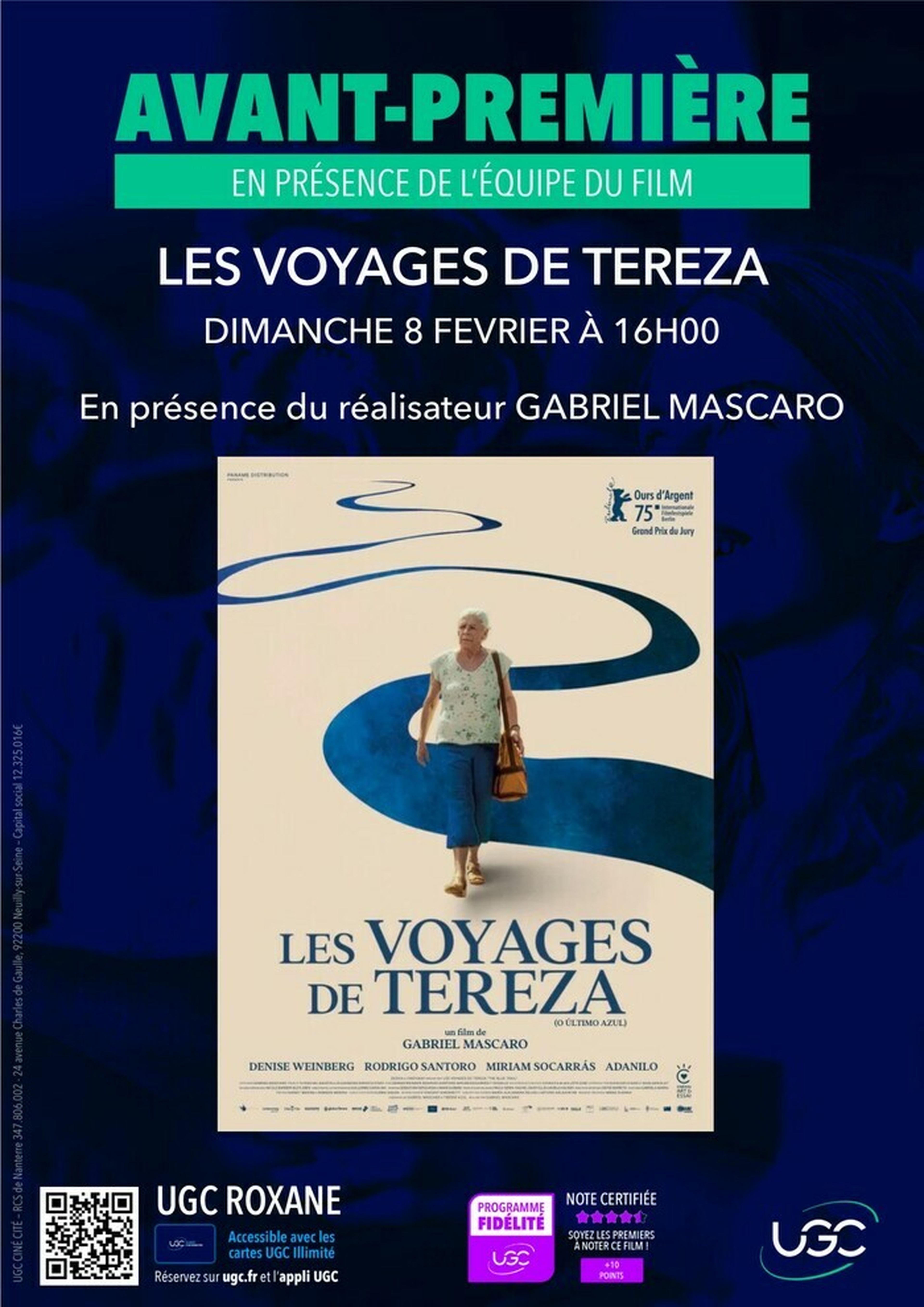 S'inscrire / Réserver: https://www.ugc.fr/film_les_voyages_de_tereza_17390.html?cinemaId=40