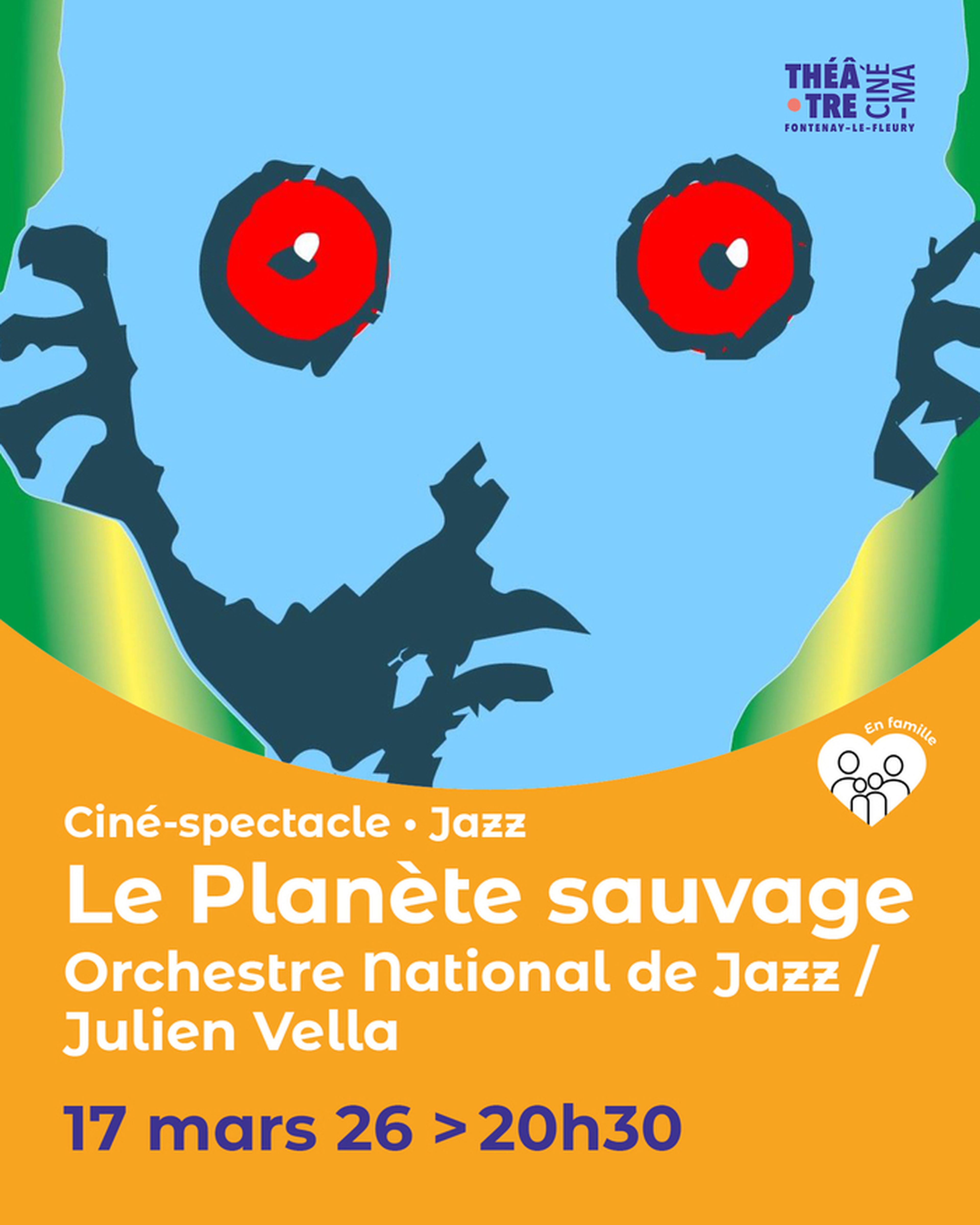La Planète sauvage Bienvenue sur la planète Ygam, ses géants bleus... et leurs humains de compagnie ! Ce ciné-spectacle rend hommage à un chef-d’œuvre des 70s qui a marqué sa génération, une fable animée visionnaire.