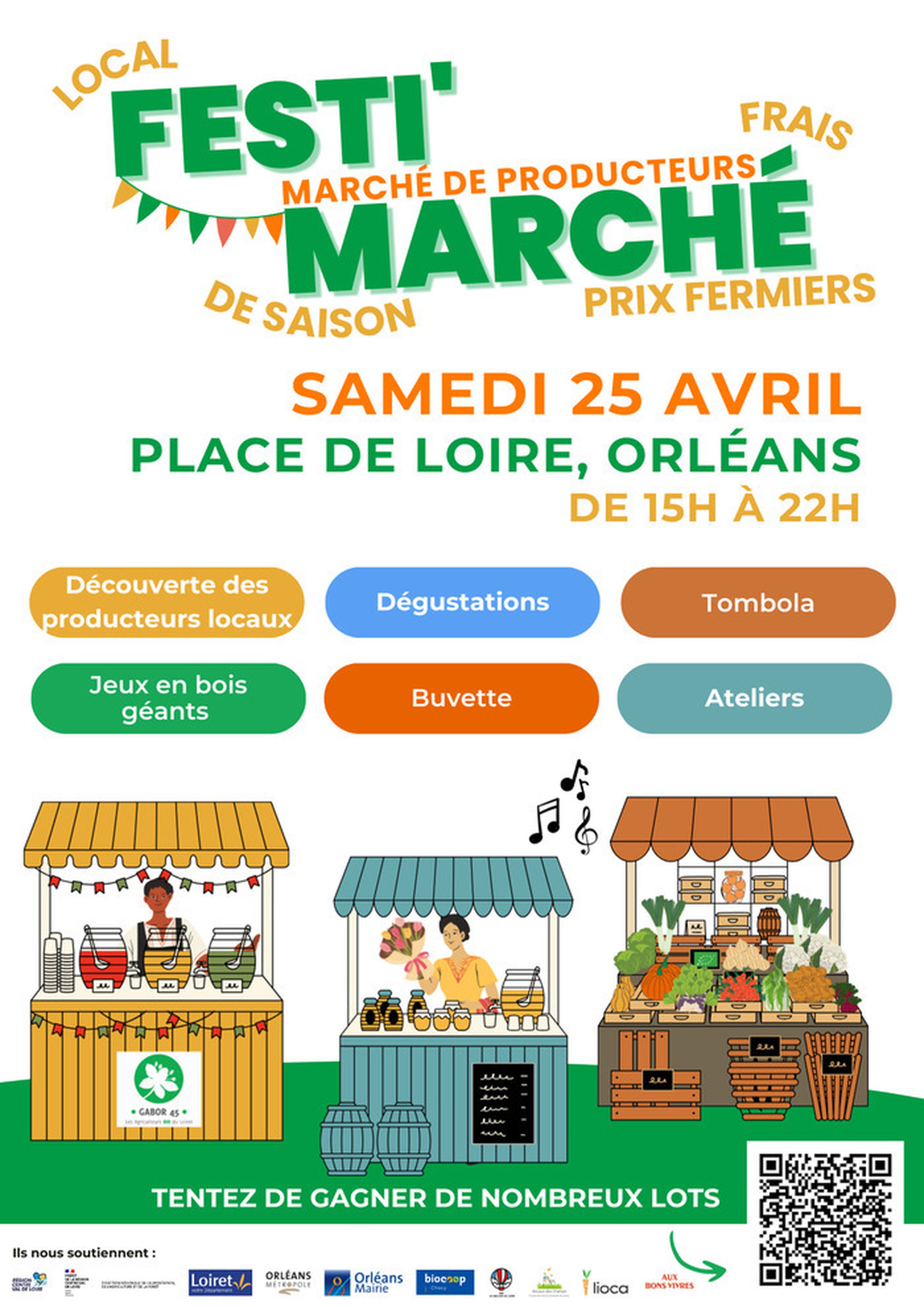 Au Festi’Marché, venez rencontrer les producteurs bio et locaux du Loiret ! Un large panel de produits sera proposé aux visiteurs, des fruits et légumes au miel en passant par des tartinables ou encore des bocaux apéritifs. Amusez-vous en musique et en famille grâce aux jeux en bois géants et aux ateliers qui se tiendront tout au long de l’après-midi.Une buvette offrira de quoi se rafraîchir tout au long de la soirée.