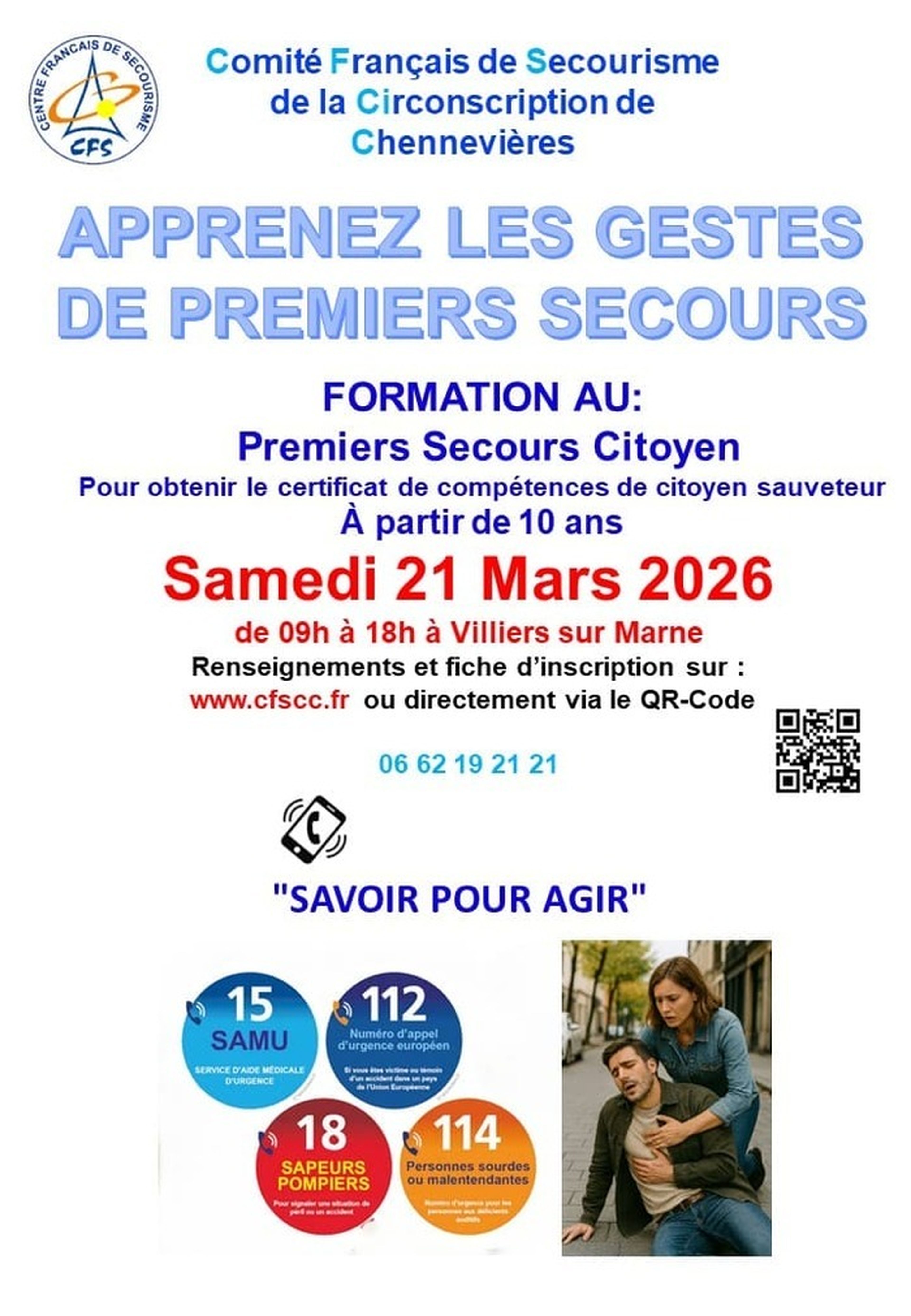 Cours de secourisme proposé par le Centre Français de Secourisme de la Circonscription de Chennevières pour obtenir le P.S.C. Sur inscription préalable (minimum 5 candidats!)