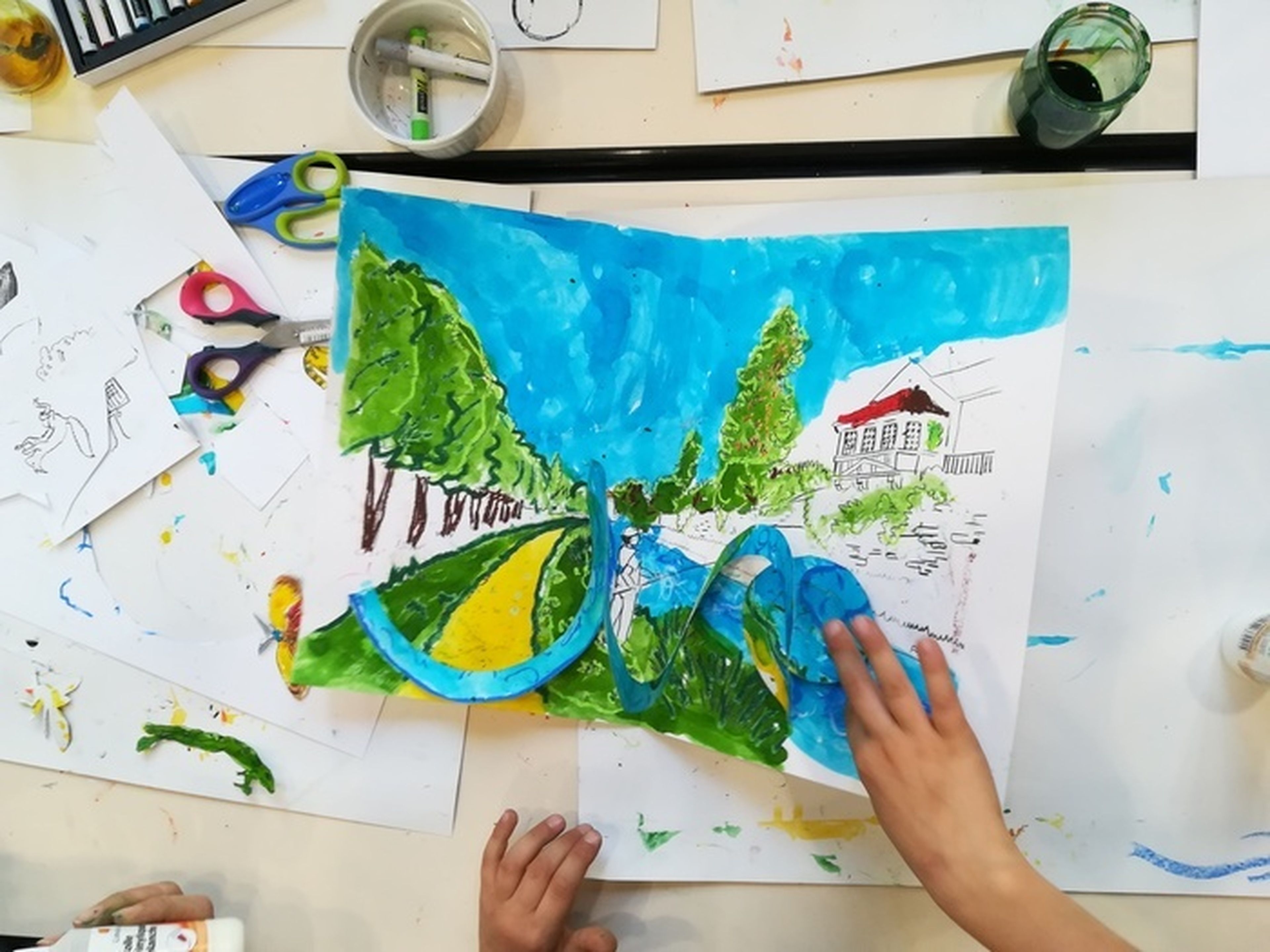 Les enfants créent leur propre pop-up à partir de paysages du territoire.