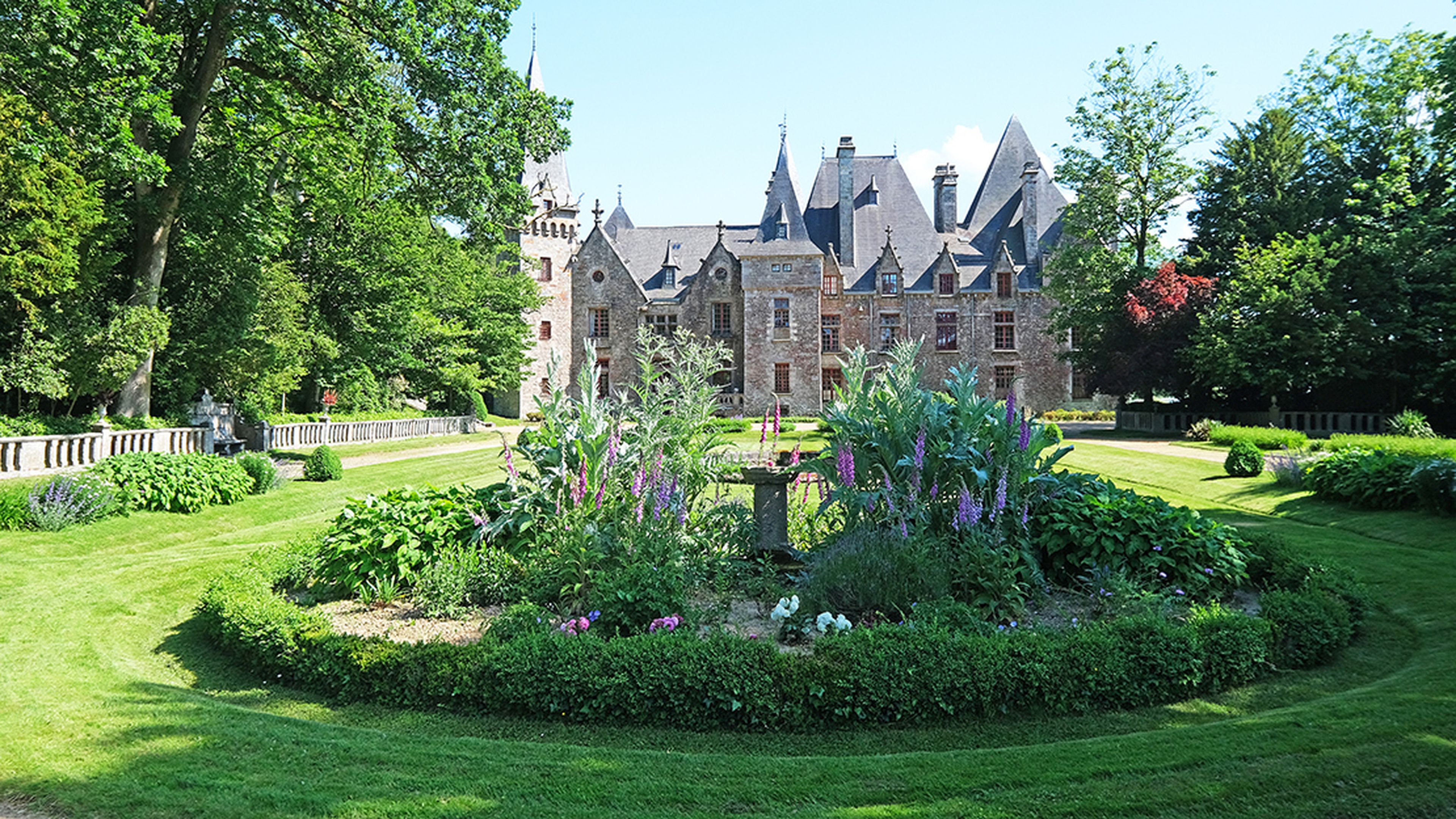 Au Bois Cornillé, balusters, balconies, columns, stairs, basins magnify nature, rhythm the walk and emphasize the Breton character of the domain.