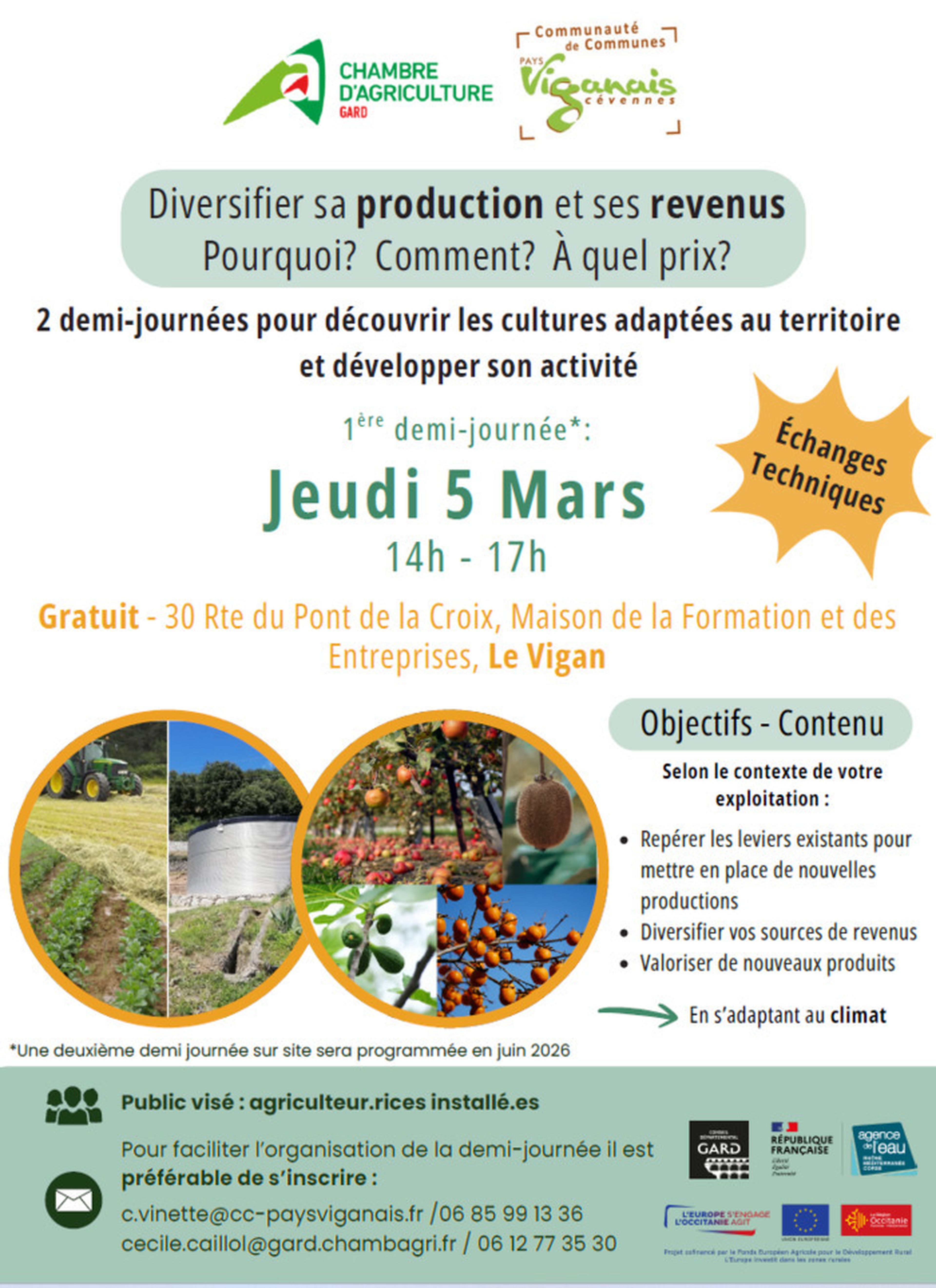 S'inscrire auprès de cecile.caillol@gard.chambagri.fr 06 12 77 35 30